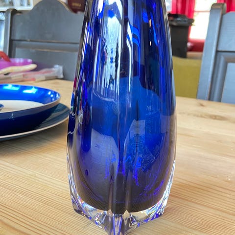 Glassvase liten. Munnblåst Blå vase.