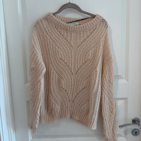 Lys beige Selected femme genser i ullblanding, 39% ull, 20% alpakka. Str small, petite. Pent brukt.