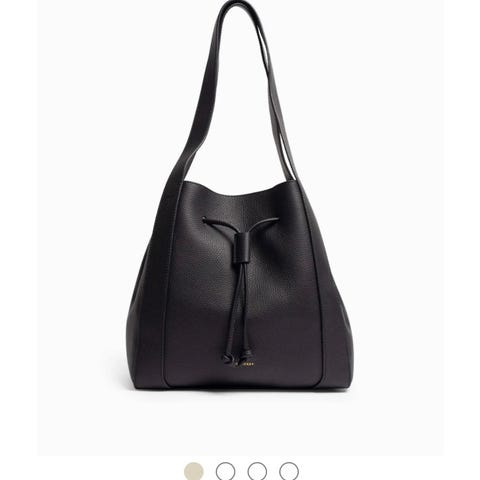 Vesken har to skulderstropper og kommer med en liten, innvendig clutch som er festet til vesken slik at du enkelt kan ha med deg verdisaker.