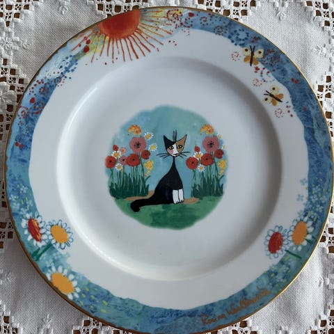 Selger mitt vakre servise fra Firkløveren med de ikoniske kattemotivene til kunstneren Rosina Wachtmeister.