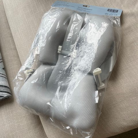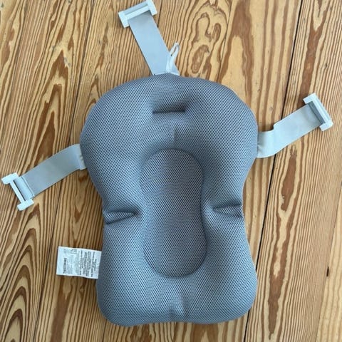 Supert til bruk for den nyfødte i badebaljen. Babyen ligger superkonfortabelt, og innlegget festes enkelt til baljen med de fire hempene.