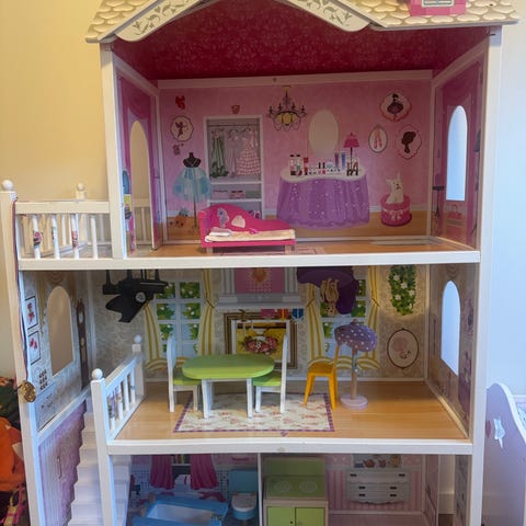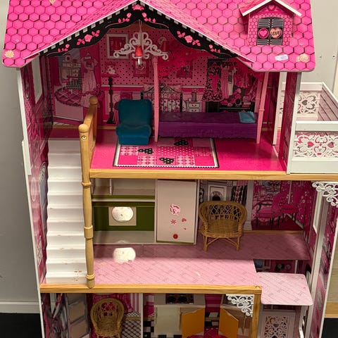 Dukkehus som stort sett kun har stått til pynt på jenterommet. Må hentes. Møblene som vises på bildet følger med.