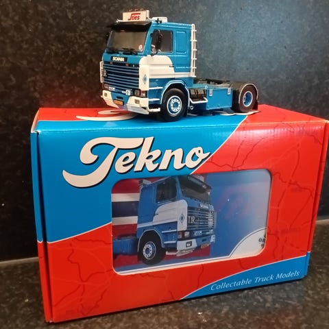 Tekno lastebilmodell i Blå/grønn farge. Modellen leveres i original eske med vindu. Detaljert førerhus og chassis med flere aksler. Egner seg som samlerobjekt eller utstillingsmodell.