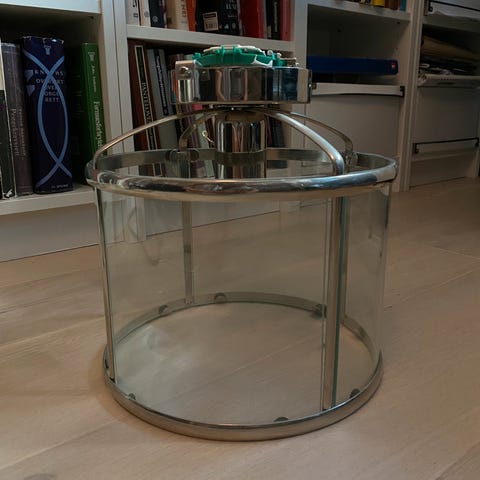 1 fin ,grå taklampe i stål og glass,ikke kvadratisk.