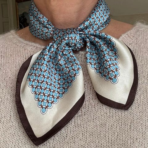 Dette er et nydelig vintage Christian Dior tørkle, trolig fra rundt 1970-1980 tallet. Kan brukes rundt halsen, i håret, på veska, på buksa o.l.