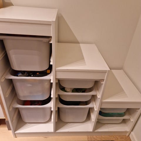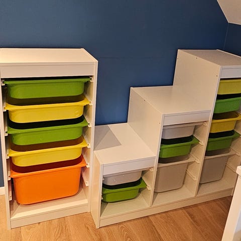 IKEA Trofast oppbevaringssystem med plastkasser hvit flerfarget