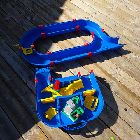Komplett Aquaplay selges. Egnet for barn som liker vannlek og konstruksjon, og kan brukes ute der det er tilgang til vann og egnet underlag.