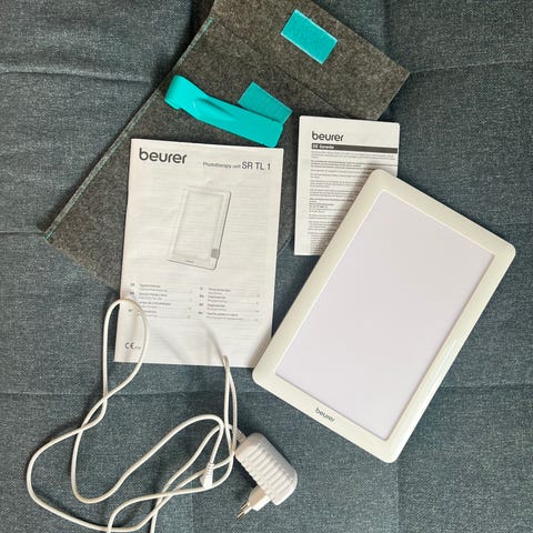 Beurer lysterapilampe i hvit utførelse. Rektangulær lampe med LED-lysflate og støtte på baksiden. Lampen drives med strøm via medfølgende ledning. Egnet for bruk innendørs, for eksempel på bord eller skrivepult. Leveres med filtunderlag med Beurer-logo.