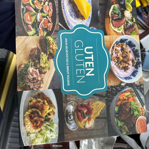 1) «Uten gluten» av Anja Skjævestad og Birgit Kolbæk – kokebok med ulike glutenfrie retter illustrert med fargebilder.