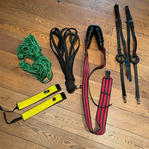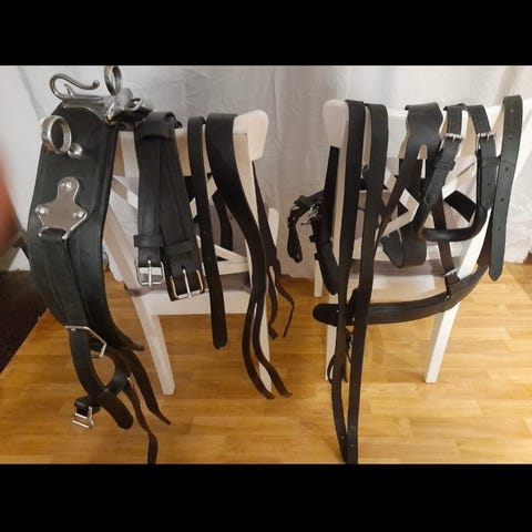 Longjerings sele med 2 seleter + nesten nye tømmer selges. Tøyler er 8m til vanlig stor hest og brukt bare 2 ganger.