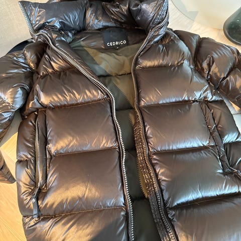 Cedrico vinterjakke for dame i størrelse 36. Jakken er fylt med dun og har ytterstoff i grønn farge. Modellen har hette med pelskant, glidelås og knappelukking foran samt justerbar snøring i livet. Vinterjakken er vattert og lang i fasongen for ekstra dekning og varme.