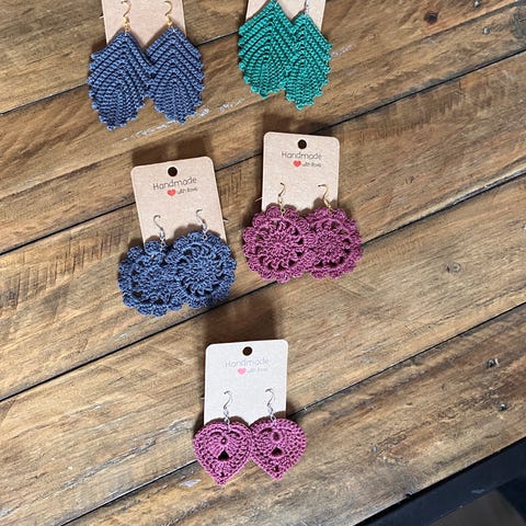3 stk. vakre og elegante nåler, brosjer med heklede roser, blomster. Yndig detalj på kjole, genser, kåpe etc. Måler ca. 8 cm i diameter. Selges samlet. Hentes på Torshov. Heis.