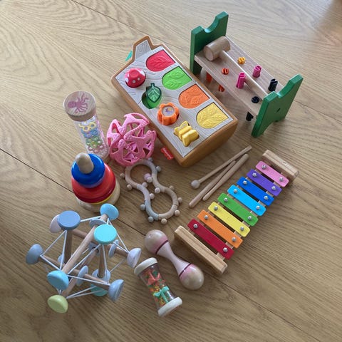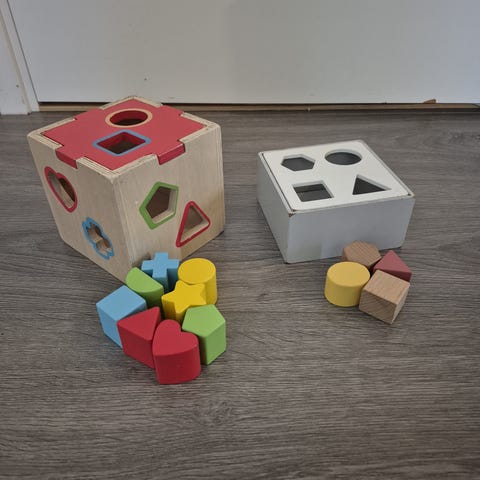 Selger diverse leker i tre. To lekeballer fra Liewood.