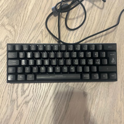 HyperX Alloy Origins 60 gamingtastatur som har blitt brukt 2-3 ganger. Et supert tastatur for en som trenger et lett og lite tastatur. Er med RGB lys som skifter farge👍