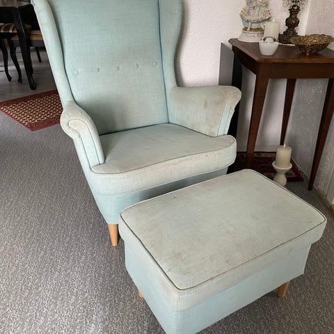 IKEA Strandmon ørelappstol og fotskammel