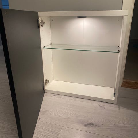 Selger Metod skal med hyller og dører. Er ett kutt i øverste hjørne da det har gått ett rør gjennom. Det påvirker ikke funksjonaliteten