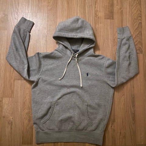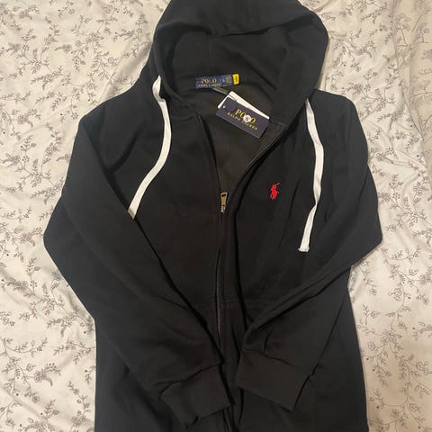 Ralph Lauren hettegenser for herre i størrelse S. Genseren er beige og laget av bomull. Modellen har glidelås i front, hette med snøring og lommer foran. Passer til hverdagsbruk og fritid.