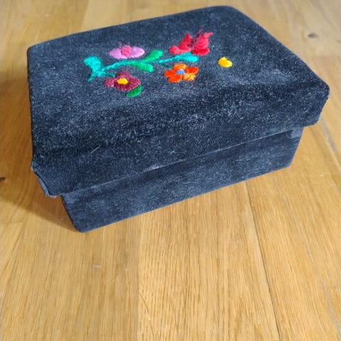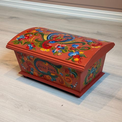 Bunadsølv skrin til en som heter Mona. Det ble laget til meg i 2002. .