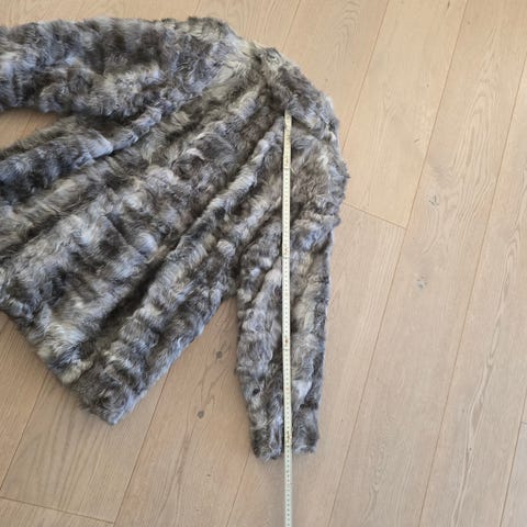 Pelsen har flotte naturlige fargenyanser i brun, rød og grå, og fremstår som fyldig og godt bevart. Jakken virker lite brukt og i god stand.