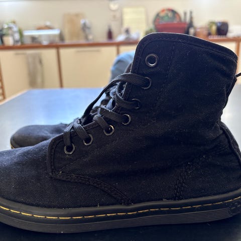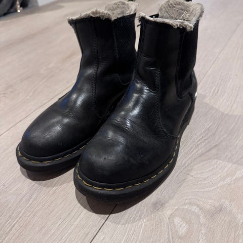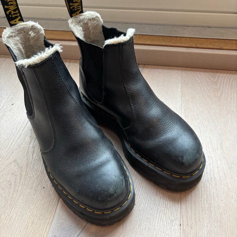 Hei, I have these plattform Dr. Martens (4cm heal) - they are very clearly well worn, but I have put these up on Finn for someone to find who is looking for a cheaper shoe that serves its purpose without caring about scuff marks etc. Though I do understand that this condition of a shoe is not for everyone.