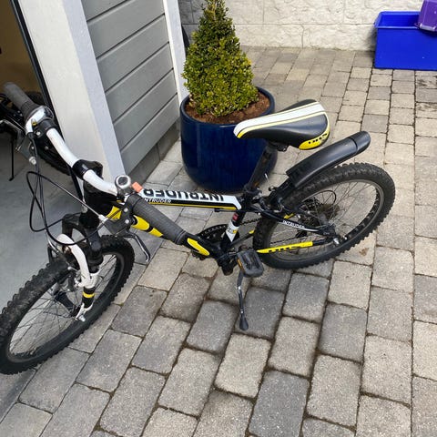 Barna har blitt for stor for sykkelen så nå er den klar for ny eier.