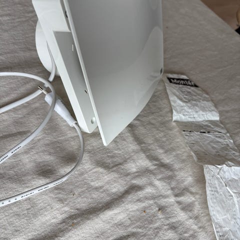 Materiale: plast, hovedsakelig hvit med sorte komponenter.