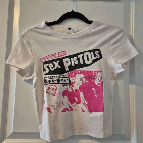 Topp med the beatles design "the beatles strawberry fields forever magical mystery tour". Hvit med svart tekst. xs-s, bomull. Sommer