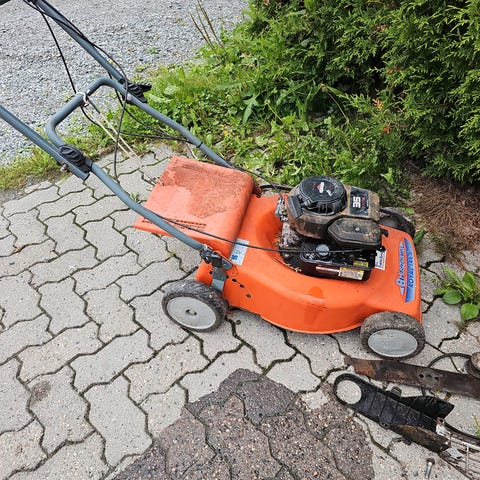 Husqvarna LB 48 V gressklipper med bensinmotor fra Briggs & Stratton (650-serie). Klipperen har oransje og grått chassis med integrert Husqvarna-logo. Håndtak med betjeningsbøyle for start og stopp av kniv. Egnet for klipping av plen i hage og uteområder. Modellen er konstruert for bensindrift og har robust klippehus i metall. Den mangler deksel over reima og reima må byttes da den ikke tar tak på fremdriften lengere. Starter og går og klipper bra,men mangler fremdriften pga reima.