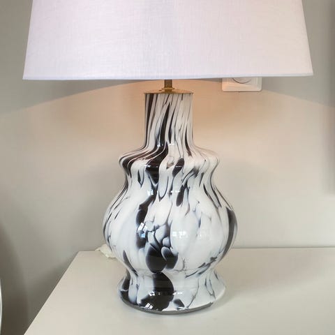 Dekorativ bordlampe med bronsefigur og marmorfot