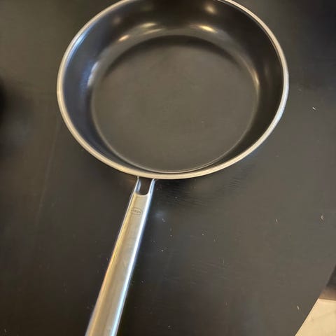 stekepanne med lav kant og løs ringform. Pannen har non-stick belegg og langt håndtak i plast. Bunnen er utformet for jevn varmefordeling. Den lave kanten gjør pannen egnet til for eksempel pannekaker eller lapper. Medfølgende rund ringform i metall kan brukes til å forme og holde røren på plass under steking. Egner seg til vanlig bruk på komfyrtopper som er kompatible med pannens bunn (se merking på baksiden).