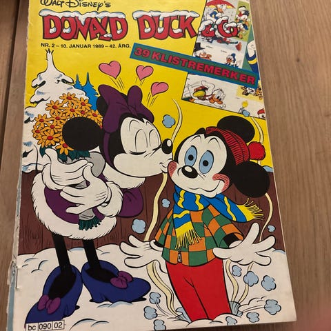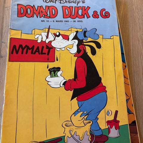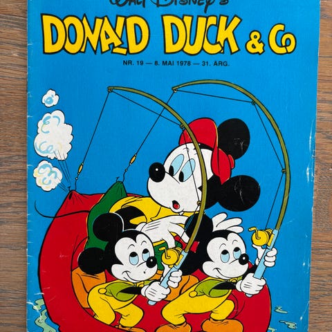 Walt Disney Donald Duck & Co tegneserieblader. Norske hefter med historier fra Andeby, inkludert figurer som Donald Duck, Mikke Mus og Minnie Mus. Enkelte blader har utklippsark med papirhus og andre aktiviteter. Egner seg som lesestoff eller samlerobjekter for tegneserieinteresserte. Hele og fine, kr 10 pr stk