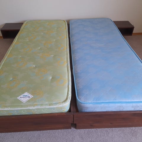 Eldre lavere version av Malm.Uten madrass. 2 nattbord følger med om ønskelig. Seng er demontert men ikke nattbord. Må hentes