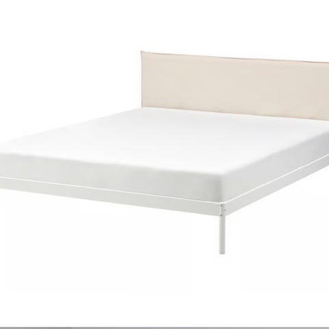 IKEA seng med hodegavl i lys trefinish. Rammen er i trelook med rett hodegavl og hel sengekant rundt madrassen. Sengen har et enkelt, moderne uttrykk og passer inn i soverom med lys eller nøytral innredning. Egnet for standard madrass i tilsvarende størrelse som rammen er beregnet for.