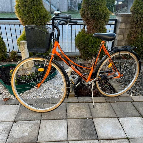 Sykkelen er nesten ikke brukt og selges med kurv, veske og vannflaske om ønskelig.