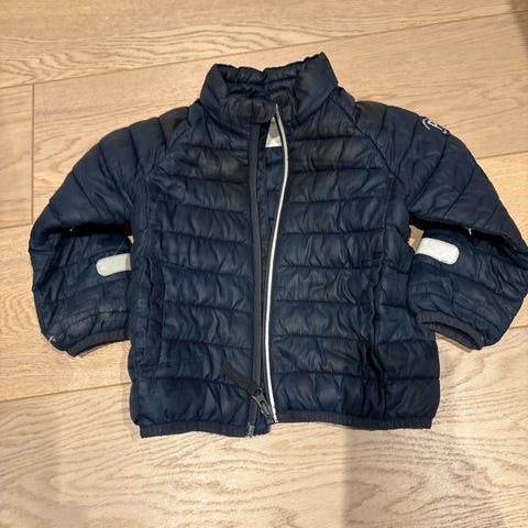 Polarn O. Pyret jakke for barn i størrelse 92. Jakken er i blå polyester og er egnet for unisex bruk. Den har hette, glidelåslukking foran og refleksdetaljer på ermene. Passer som ytterjakke til hverdagsbruk og utendørs lek.