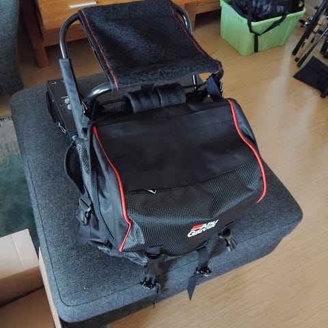 Abu Garcia stolsekk i svart stoff med røde detaljer. Sekken har integrert sammenleggbar stol med metallramme og polstret bærehåndtak. Hovedrom med klaff og spenner, samt flere mindre lommer for oppbevaring av utstyr. Egnet til fiske, tur og annet friluftsliv der det er praktisk å kombinere sekk og sitteplass. Passer barn fra 2-4 år.