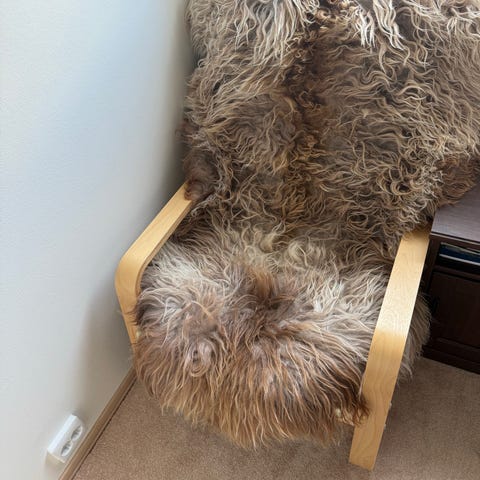 Kurvstol med hvitt saueskinn