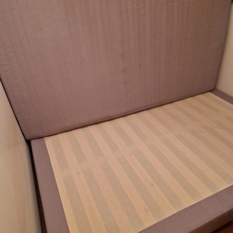 Jysk Kongsberg seng i grått tekstiltrekk. Sengen har hodegavl og rette linjer med enkle detaljer i fotenden. Ben i lyst tre gir et lett uttrykk. Passer som hovedseng eller gjesteseng på soverom.