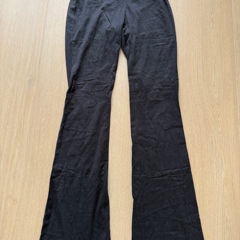 Gina Tricot bukse for dame i størrelse M. Buksen er i polyester og har et flerfarget stripemønster med vertikale striper. Modellen har rette, vide ben og normal midje. Passer til hverdagsbruk eller mer formelle anledninger avhengig av styling.