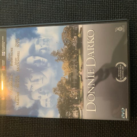 Donnie Darko DVD film. Utgave av spillefilmen «Donnie Darko» på DVD. Omslaget viser originalt filmomslag med informasjon på flere nordiske språk. Baksiden inneholder kort filmomtale, tekniske spesifikasjoner og oversikt over eventuelt ekstramateriale (special features). Egnet for avspilling på DVD-spillere som støtter regionkoden angitt på omslaget, og med undertekster og lydspor som oppgitt på coveret.