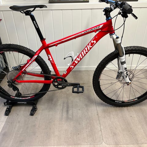 Selger en påkostet og meget oppgradert Specialized S-Works mtb med 26» hjul. Størrelse er 17», så den passer nok deg mellom 168-180cm. Den er satt opp til en person på 178cm på bildene ;-)