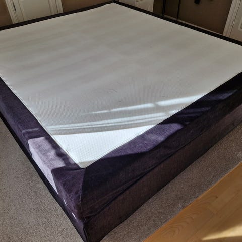 Overmadrass kan følge med dersom det er ønskelig, den har noe slitasje på den siden som ikke vender oppover, det er forsøkt avbildet.