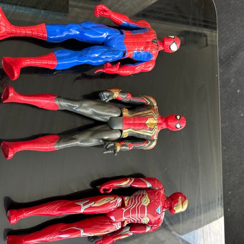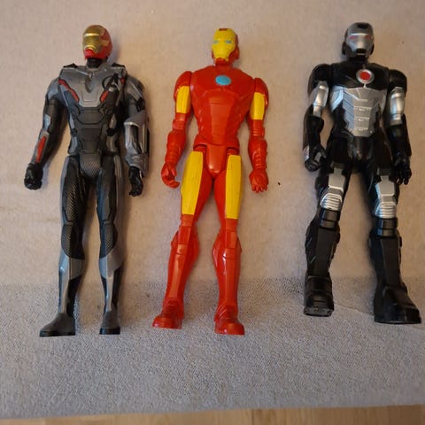 Marvel actionfigurer sett med figurene Iron Man, Hulk og Spider-Man i plast. Figurene er fargerike med karakteristiske drakter og detaljer. Egnet som leker for barn eller som samleobjekter for fans av Marvel-universet. Kan brukes til rollelek, utstilling på hylle eller som del av en større samling av superheltfigurer.