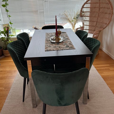 Spisestue stol i mørkegrønn velur.