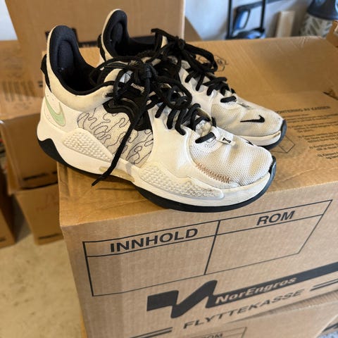 Nike sneakers i lav modell. Skoene har overdel i tekstil og semsket materiale i hvit og grå med mørkeblå swoosh og liten lyseblå detalj foran. Hælpartiet er hvitt med oransje. Passer til hverdagsbruk og fritidsaktiviteter.
