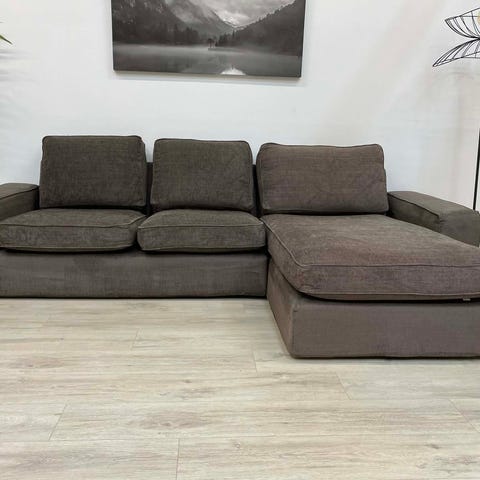 Stor god sofa med puff. Grålig naturlig farge i velour. Enkel å holde ren. Vi elsker denne sofaen, men har dessverre ikke plass i det nye huset.