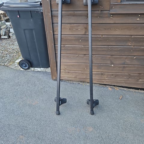 Thule takstativ i svart farge. Består av to lastebøyler med føtter. Egnet for montering på bilens tak for frakt av takboks, sykkelstativ eller annet utstyr som er kompatibelt med Thule-systemer.