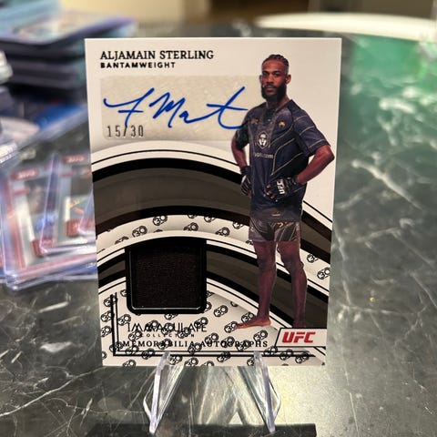 Panini Immaculate UFC TJ Dillashaw samlekort med autograf og memorabilia.