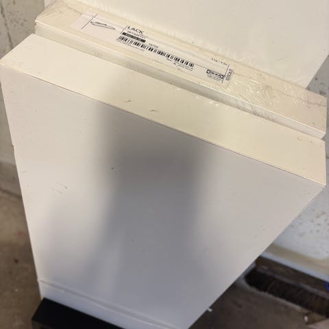 To IKEA LACK malt i beige. Består av hyller og veggfester.