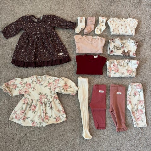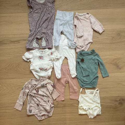Klespakke til jente i str. 62 fra hovedsakelig fra Newbie (ett par ting fra Lindex og H&M) , og består av: